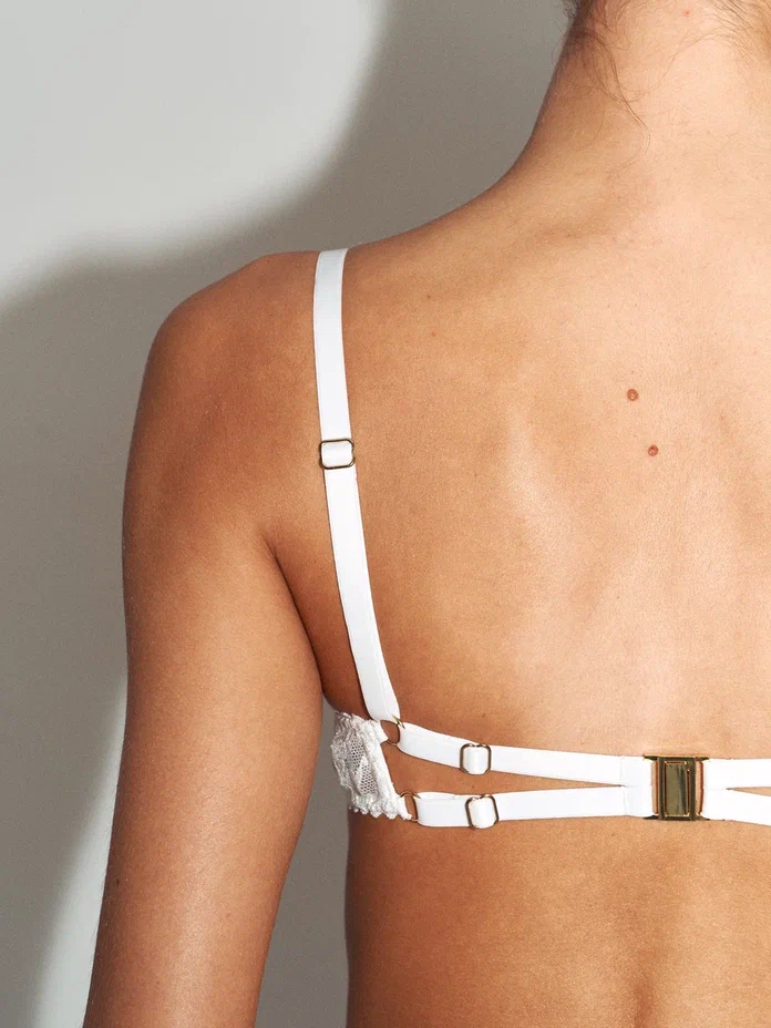 тонкой бельевой сетки, создающей лёгкий и чувственный образ. Регулируемая посадка обеспечивает идеальную фиксацию по фигуре, а золотистые сердечки добавляют модели утончённый романтичный акцент.